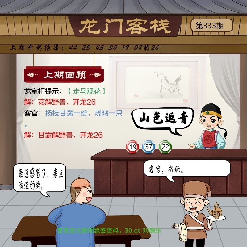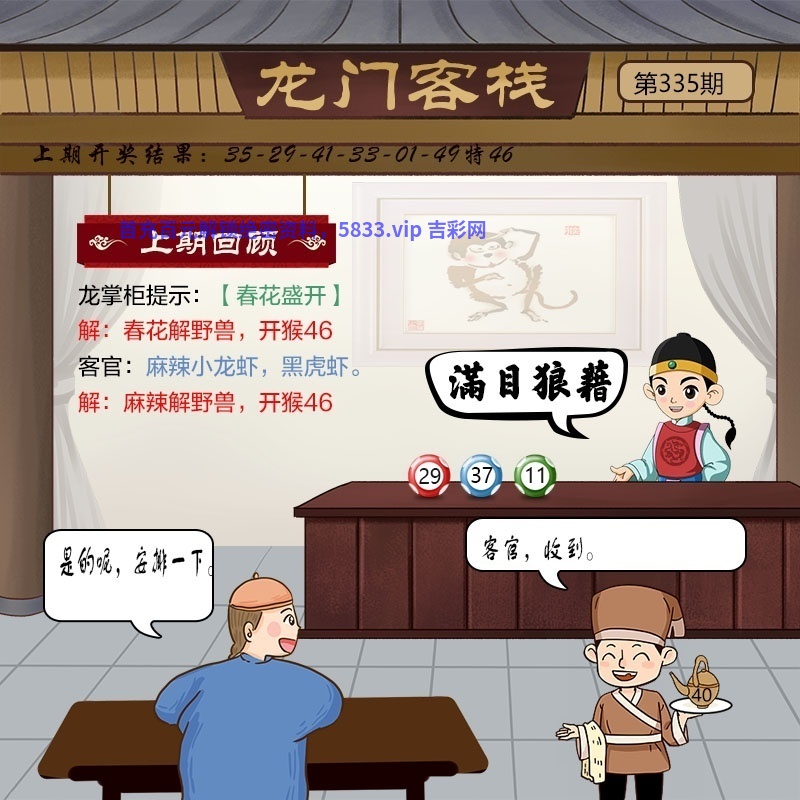 337期:龙门客栈解析 掌柜:暴風骤雨 小二:客官,吃饭还是喝酒 客官:喝点小酒,好睡觉 解:暴風骤雨。解蛇猴鸡牛龙羊 推荐特肖:蛇猴鸡牛龙羊 |